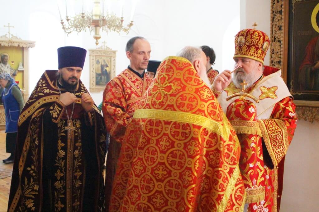 Его Преосвященству сослужили: секретарь епархиального управления Вяземской епархии протоиерей Валерий Калинин, настоятель Свято-Троицкого кафедрального собора г. Вязьма иерей Александр Курмелёв с духовенством кафедрального храма.