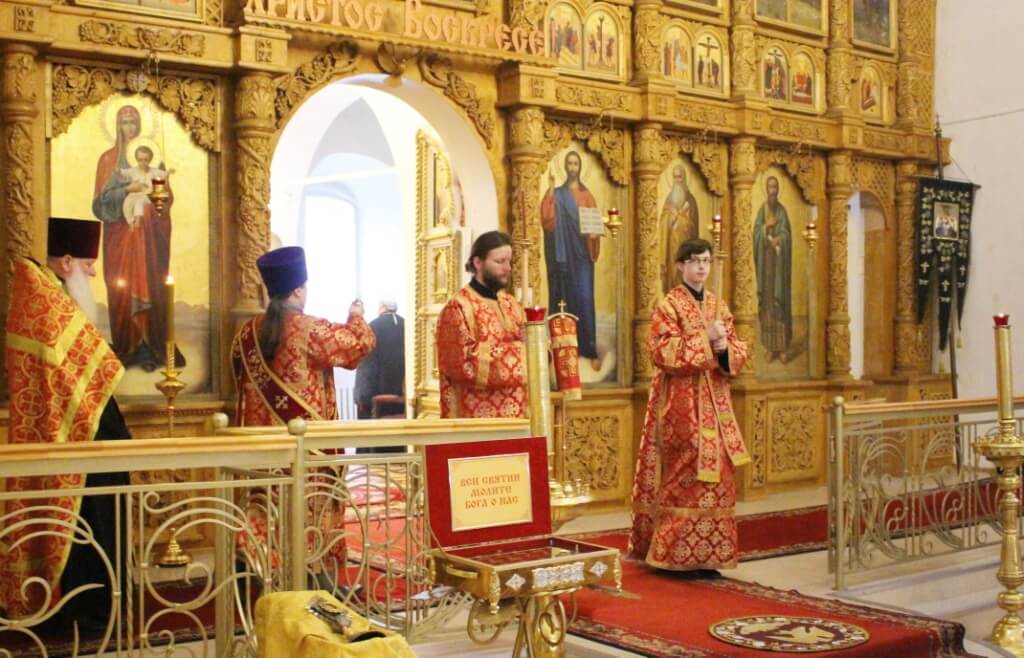 Богослужебные песнопения исполнил архиерейский хор Свято-Троицкого кафедрального собора (регент — Е.В. Платонова).