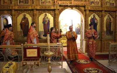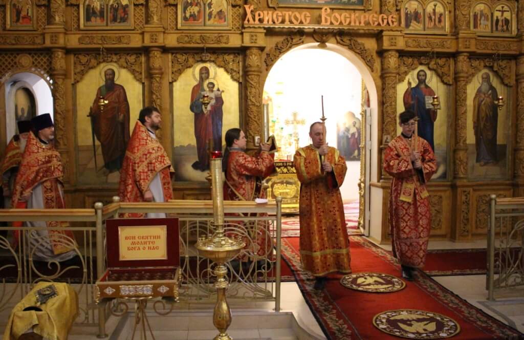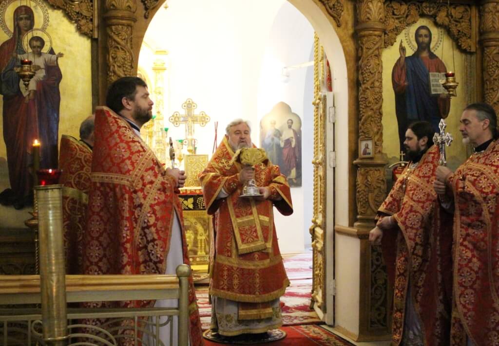 На сугубой ектении прозвучали прошения о единстве Православной Церкви и сохранении Церкви от разделений и расколов, а также прозвучали прошения возносимые во время распространения вредоносного поветрия.