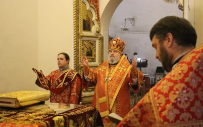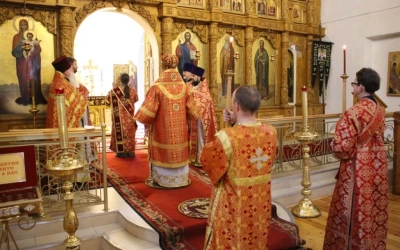 Правящему Архиерею сослужило духовенство кафедрального храма.