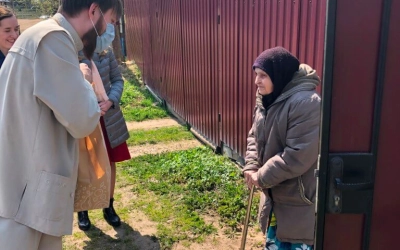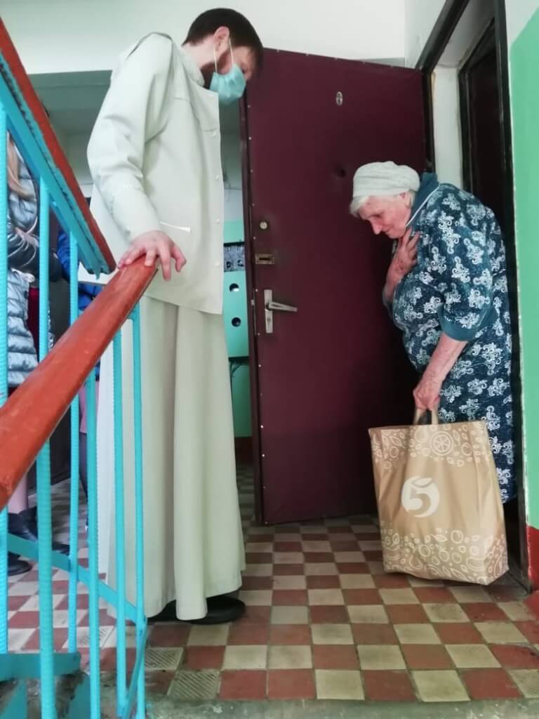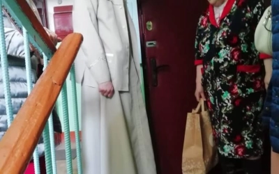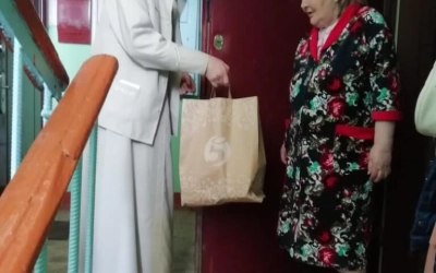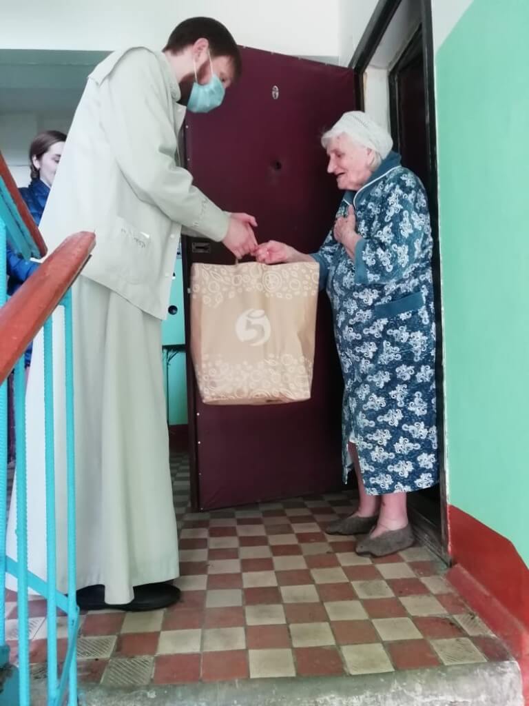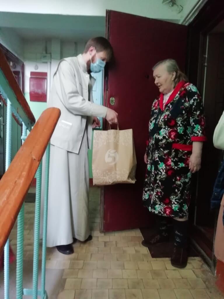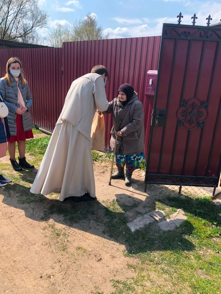 Также в рамках благотворительной акции о.Захария и прихожане Храма Рождества Христова посетили тех прихожан, которые находятся на самоизоляции. Им были вручены артос, просфоры и продуктовые наборы. Хор Храма исполнил тропарь Пасхи.