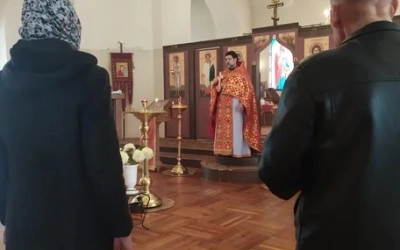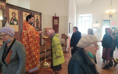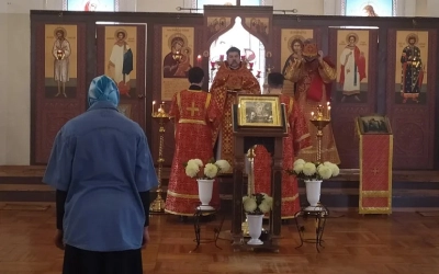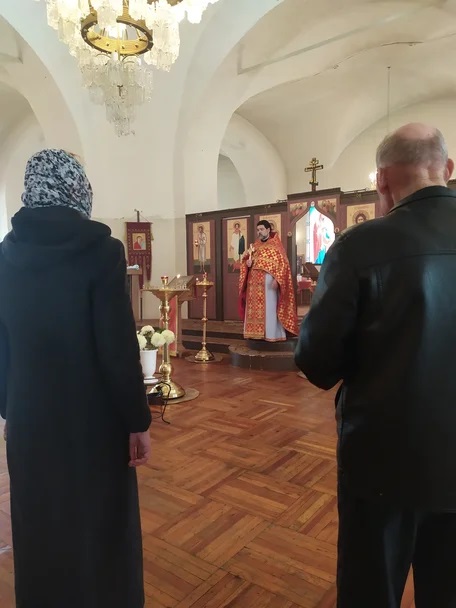 Отец Александр обратился с пастырским словом к верующим, поздравив с праздником молившихся за богослужением:
