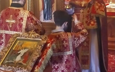 9 мая 2020 года, в субботу 3-ей седмицы по Пасхе, в 75-годовщину Победы в Великой Отечественной войне над немецко-фашистскими захватчиками настоятель храма «Всех Скорбящих Радосте» иеромонах Андрей (Дергачёв-Белошецкий) совершил Божественную Литургию святителя Иоанна Златоустого.