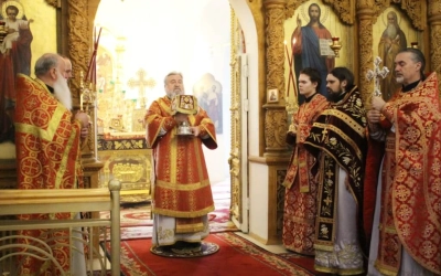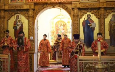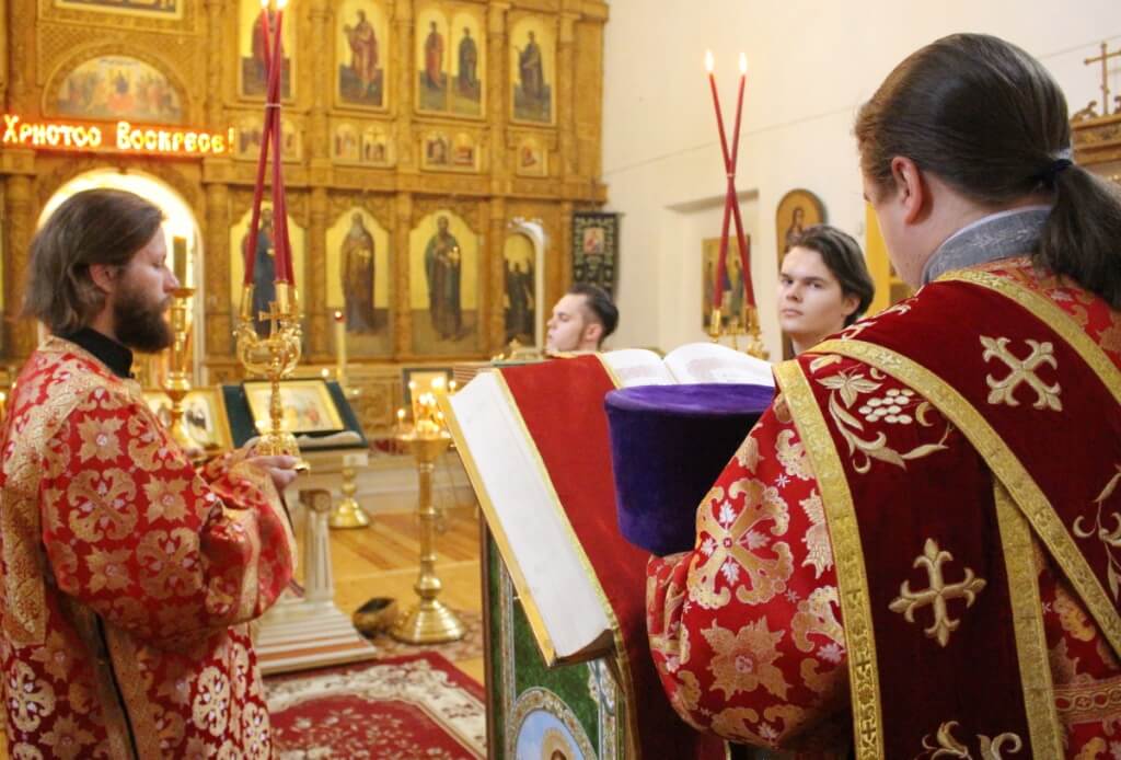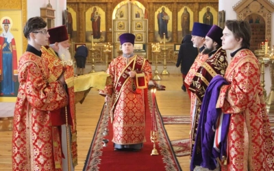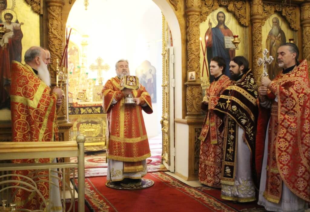 За Божественной литургией были вознесены сугубые молитвенные прошения ко Господу о ниспослании здравия, спасения и во всем благого поспешения Святейшему Патриарху Московскому и всея Руси Кириллу по случаю его тезоименитства.