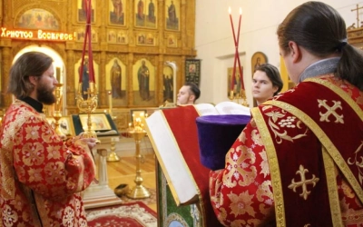 Богослужебные песнопения исполнил архиерейский хор Свято-Троицкого кафедрального собора (регент — Е.В. Платонова).