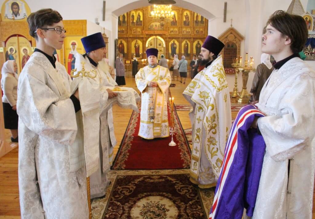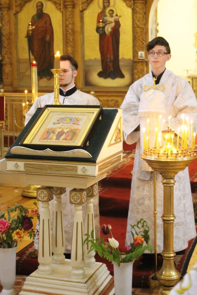 По отпусте Божественной литургии было совершено славление по случаю двунадесятого праздника Вознесения Господня.