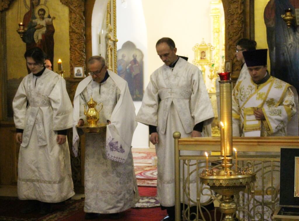 На сугубой ектении прозвучали прошения о единстве Православной Церкви и сохранении Церкви от разделений и расколов, а также прозвучали прошения возносимые во время распространения вредоносного поветрия.