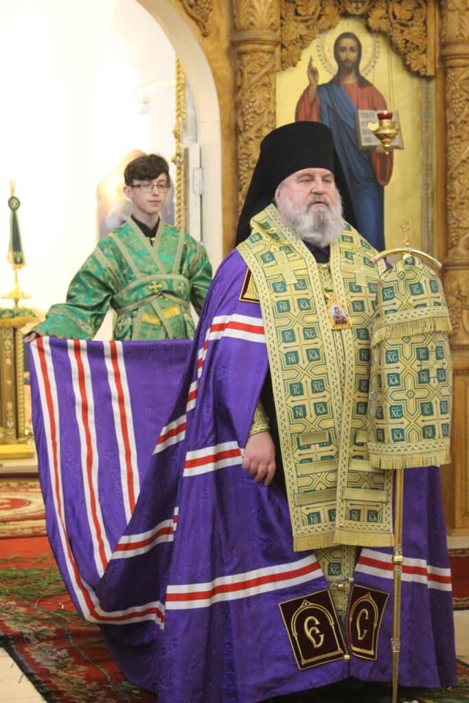 По завершении богослужения Епископ Сергий обратился к присутствующим с Архипастырским словом, поздравив всех участников вечернего богослужения с двунадесятым праздником, днём Святой Троицы.
