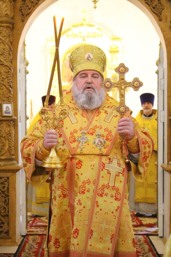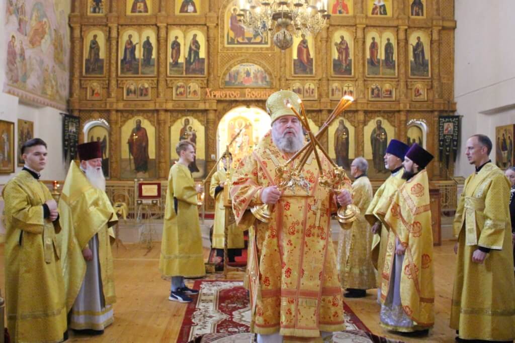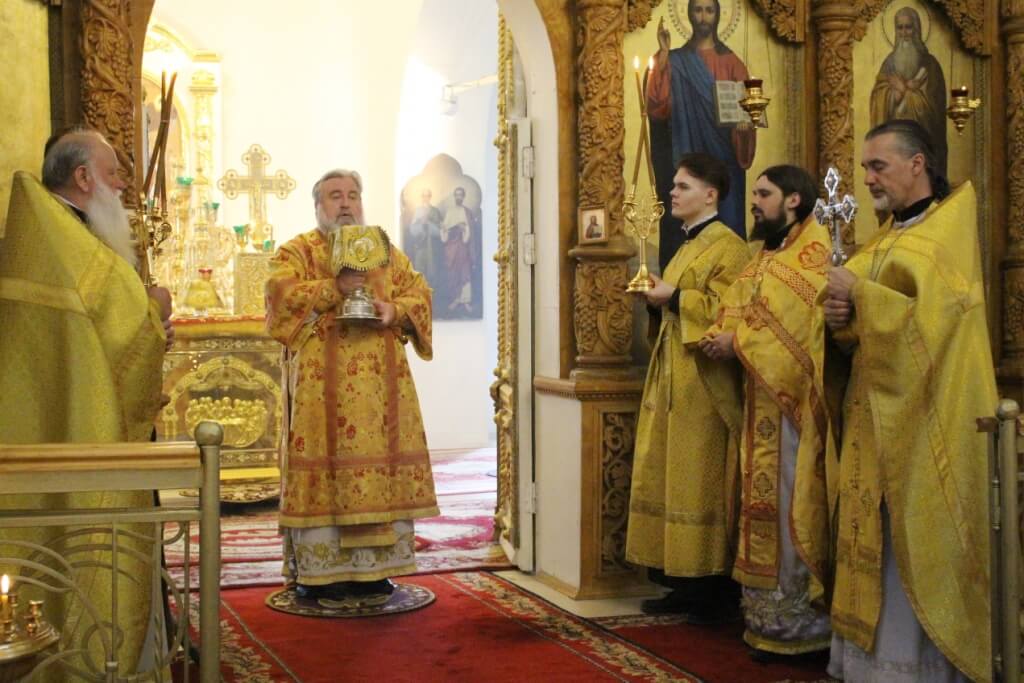 Правящему Архиерею сослужили: настоятель Свято-Троицкого кафедрального собора иерей Александр Курмелёв с духовенством кафедрального храма.