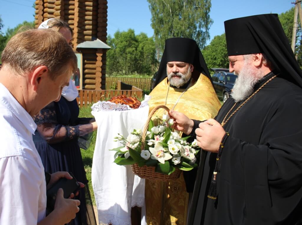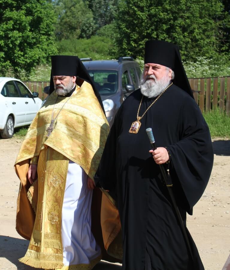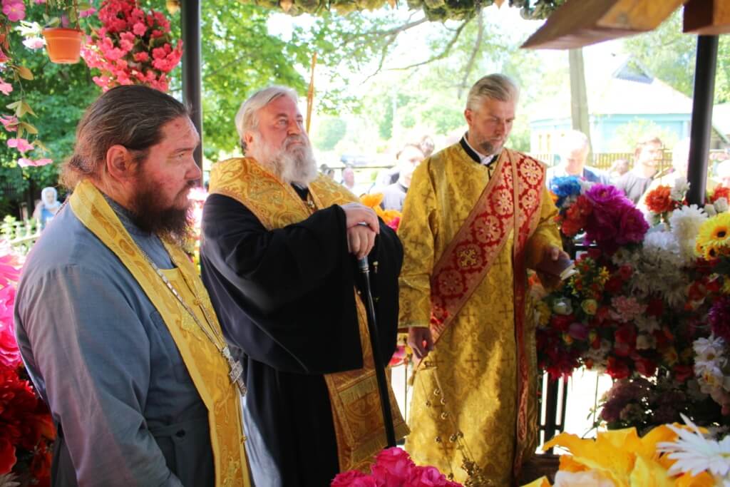 Архипастырю сослужили: секретарь Вяземской епархии протоиерей Валерий Калинин, благочинный Гагаринского округа игумен Александр (Карпиков), настоятель храма иконы Божией Матери Одигитрии деревни Темкино иерей Сергий Морозов, митрафорный протоиерей Николай Морозов, иерей Александр Припутников, настоятель храма Преображения Господня с. Баскаково иерей Иоанн Терентьев, настоятель храма Пророка Илии с.Тёмкино иерей Ростислав Суконченко.