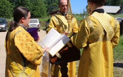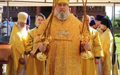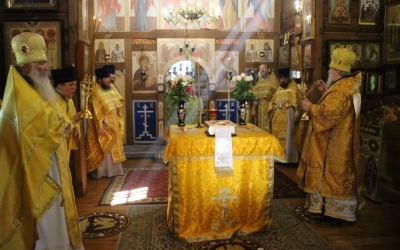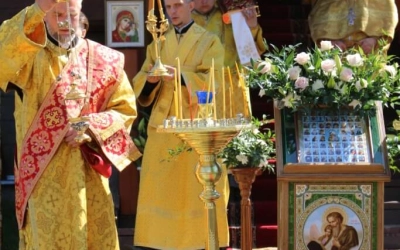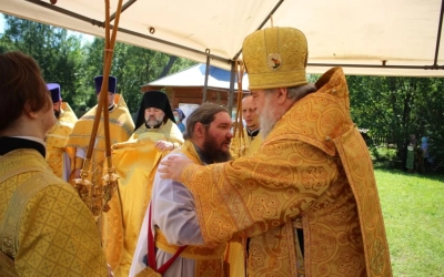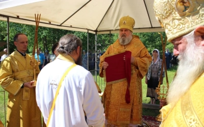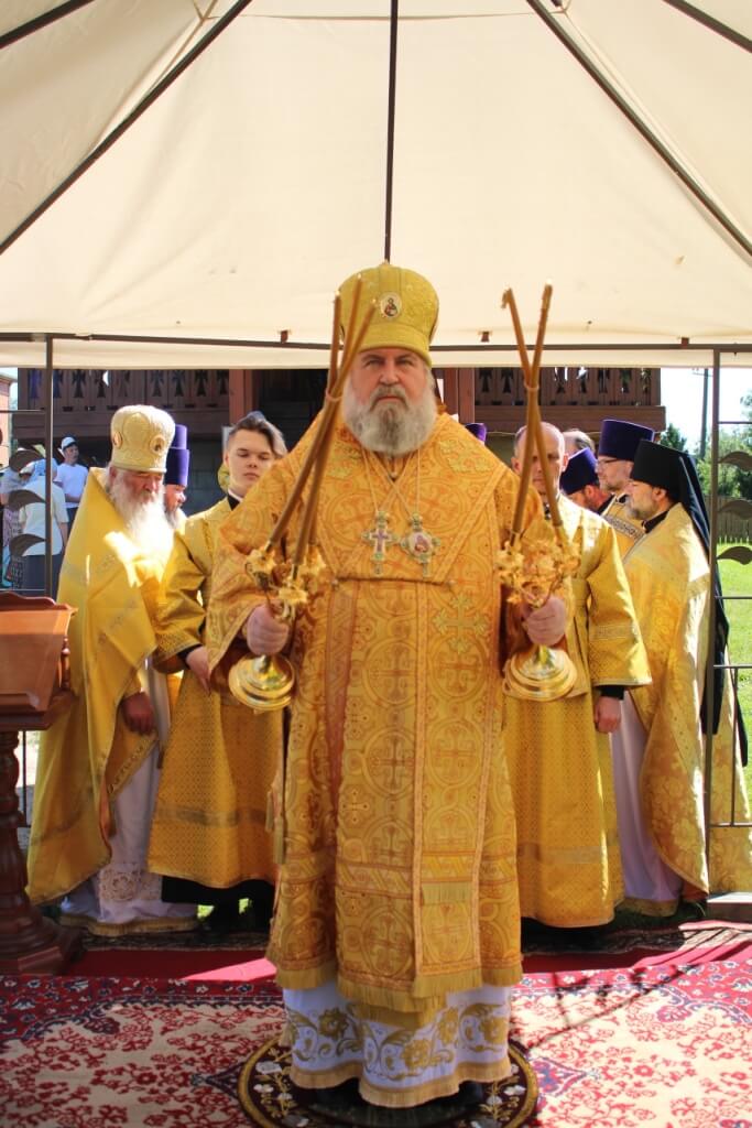 По отпусте Божественной литургии архипастырь с духовенством прошли Крестным ходом к часовне на источник Святого пророка Божия Илии, где был совершен водосвятный молебен.