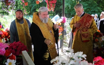По завершении водосвятного молебна на могиле схимонахини Макарии (Артемьевой), Епископ Сергий с духовенством совершили заупокойную литию.