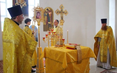 Служение Божественной литургии по случаю престольного праздника возглавил Преосвященнейший Сергий, епископ Вяземский и Гагаринский.