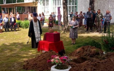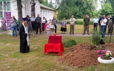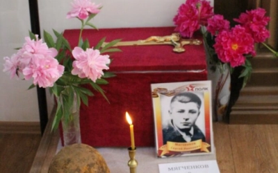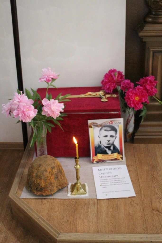После литии останки бойца партизанского отряда Мягченкова Сергея Ивановича были преданы земле.