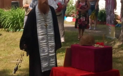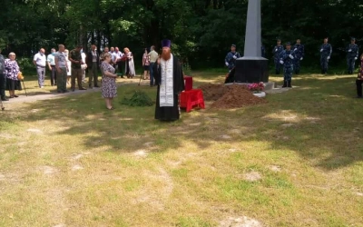 В продолжении церемонии иерей Сергий совершил литию в память усопших воинов за веру, Отечество, и народ жизнь свою положивших, и всех страдальчески погибших в годы Отечественной войны.