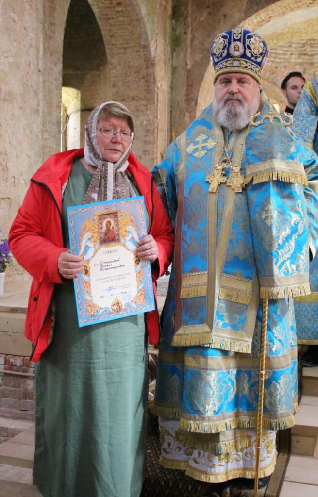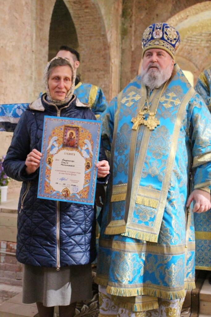 В продолжении своего слова Епископ Сергий наградил, Архиерейской грамотой, в благословение за усердные труды на благо Вяземской епархии Русской Православной Церкви: