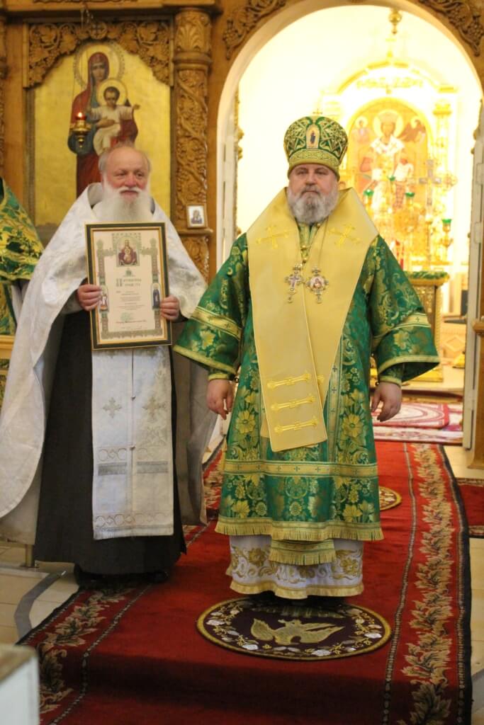 В продолжении своего слова Епископ Сергий наградил Патриаршей наградой за многие пастырские труды: