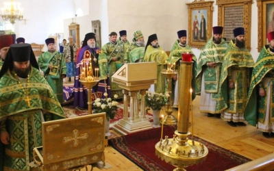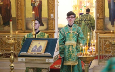 В завершении богослужения было совершено славление преподобным Сергию и Герману Валаамским Чудотворцам.