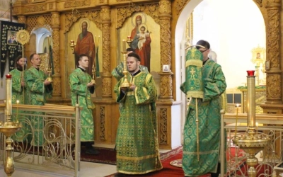 Богослужение сопровождалось пением церковного хора Свято-Троицкого кафедрального собора-регент Елена Платонова.