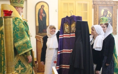 С днём Тезоименитства Преосвященнейшего Епископа Сергия поздравили ученицы золотошвейной мастерской женской монашеской общины при бывшем Аркадиевском монастыре города Вязьма, во главе со старшей сестрой общины инокиней Агнией (Цепко), подарив Епископу Сергию архиерейскую мантию ручной работы.