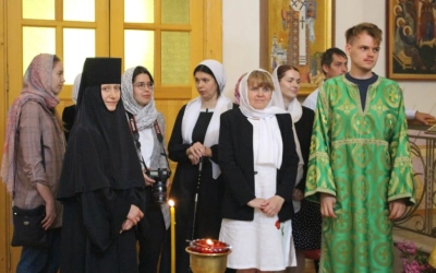 За богослужением молились: настоятельница Иоанно-Предтечева женского монастыря игумения Лаврентия (Павлюченкова), старшая сестра женской монашеской общины при бывшем Аркадиевском монастыре города Вязьма инокиня Агния (Цепко) и прихожане.