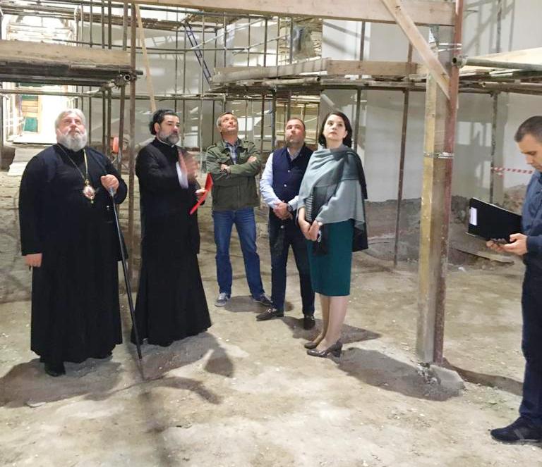 16 июля 2020 года, Преосвященнейший Сергий, епископ Вяземский и Гагаринский и заместитель Губернатора Смоленской области Полина Викторовна Хомайко провели рабочее совещание в реставрируемом Благовещенском соборе Архиерейского подворья города Гагарин.