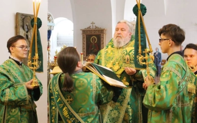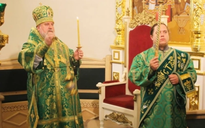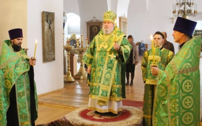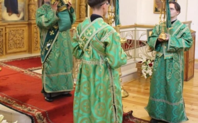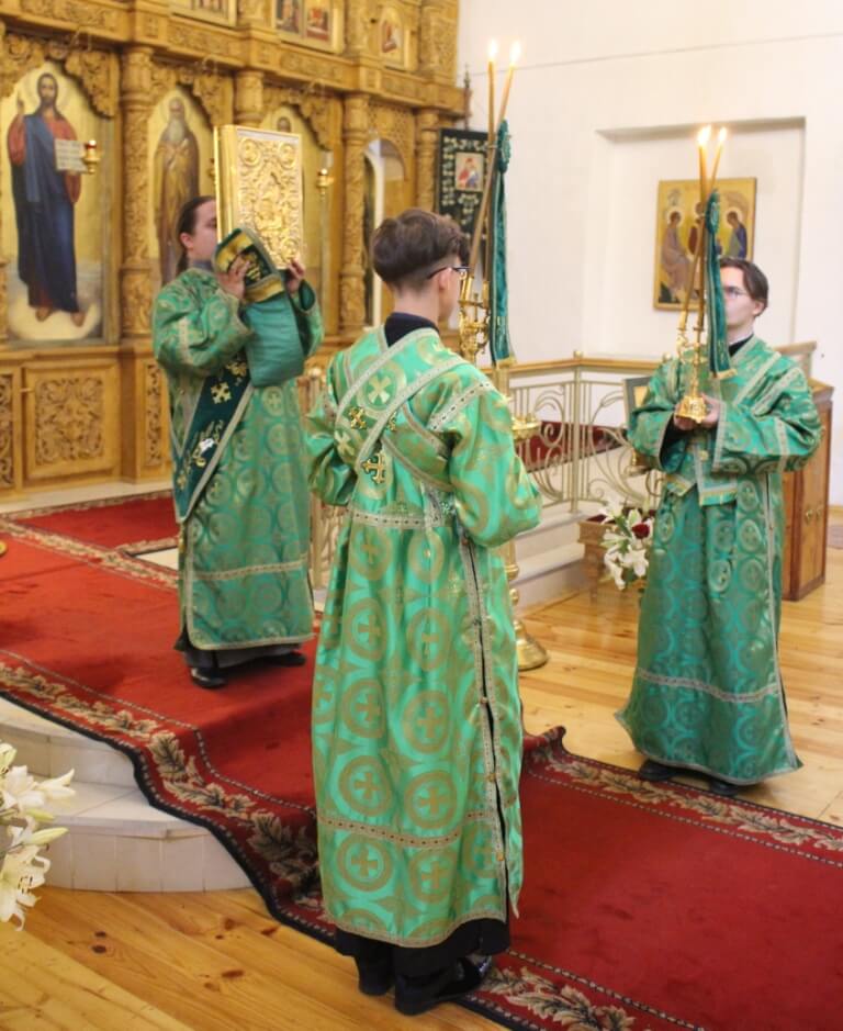 Правящему архиерею сослужили: настоятель Свято-Троицкого кафедрального собора города Вязьма иерей Александр Курмелёв, клирик Свято-Троицкого кафедрального собора иерей Владимир Покатов.