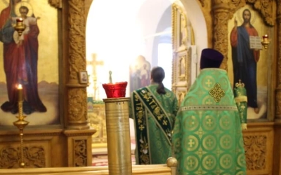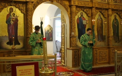 Богослужебные песнопения исполнил хор Свято-Троицкого собора-регент Елена Платонова.