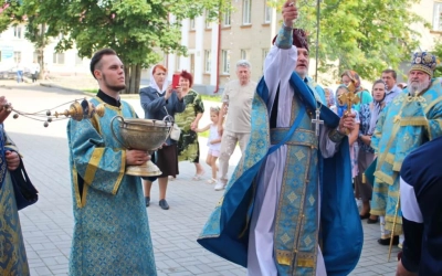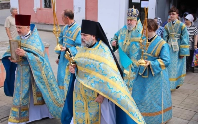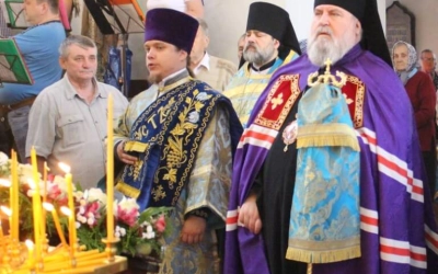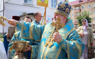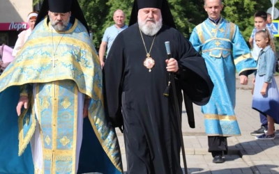По случаю Престольного правздника духовенство во главе с Епископом Сергием совершили Крестный ход.