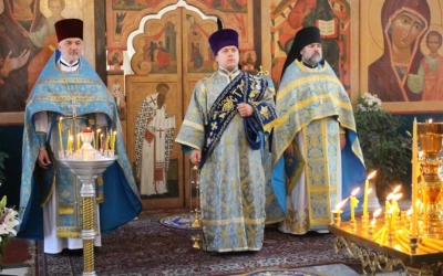 По отпусте Божественной литургии Епископ Сергий обратился к присутствующим с Архипастырским словом, поздравив духовенство и всех участников богослужения с Престольным праздником.
