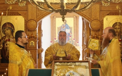 По случаю Престольного праздника духовенство во главе с Епископом Сергием совершили Крестный ход.