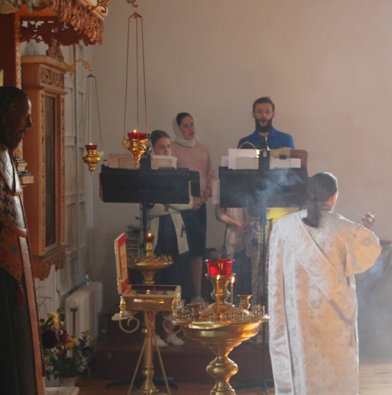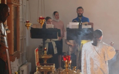 Богослужебные песнопения исполнил хор Свято-Троицкого собора-регент Татьяна Курмелёва.