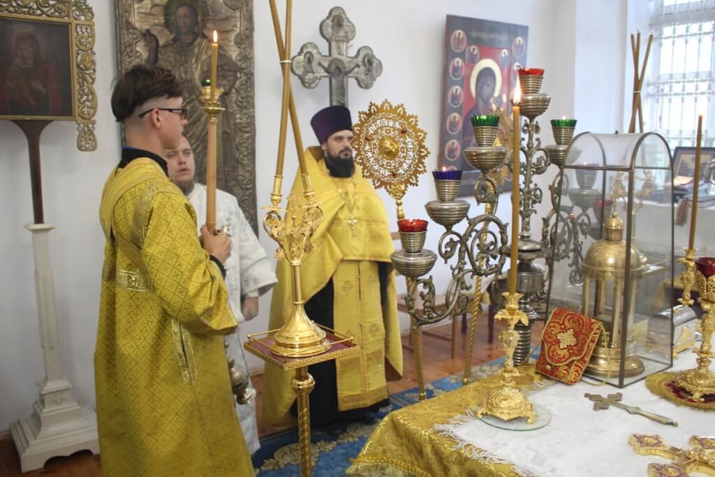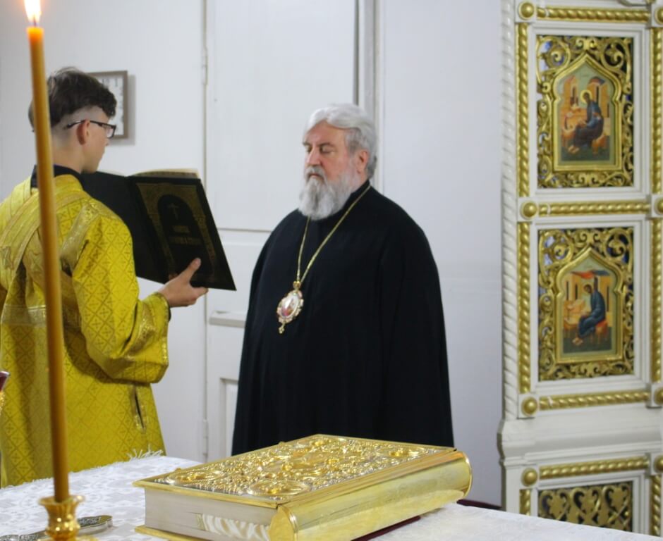 Правящему архиерею сослужили: настоятель Свято-Троицкого кафедрального собора города Вязьма иерей Александр Курмелёв, клирик Свято-Троицкого кафедрального собора иерей Владимир Покатов.