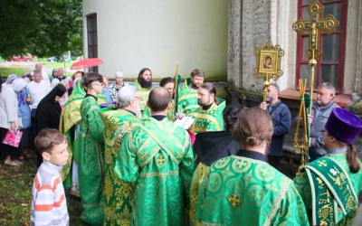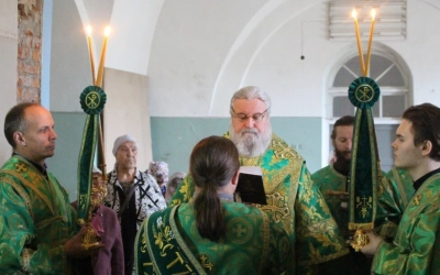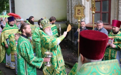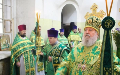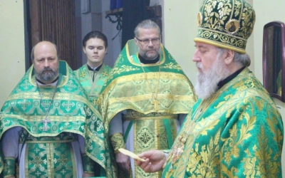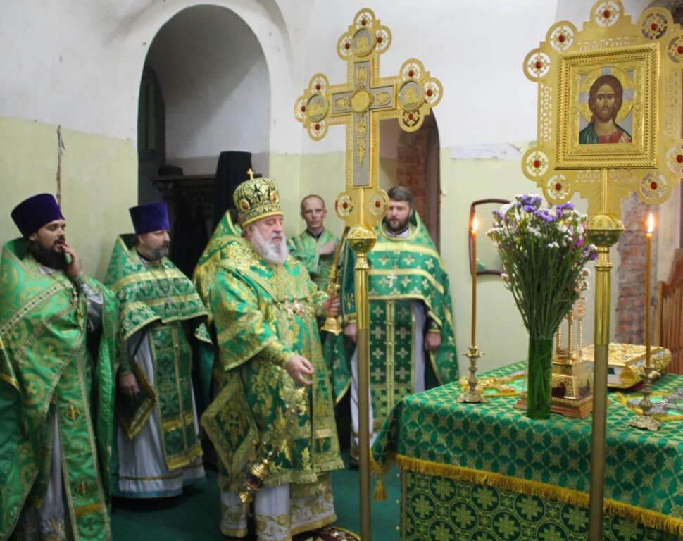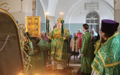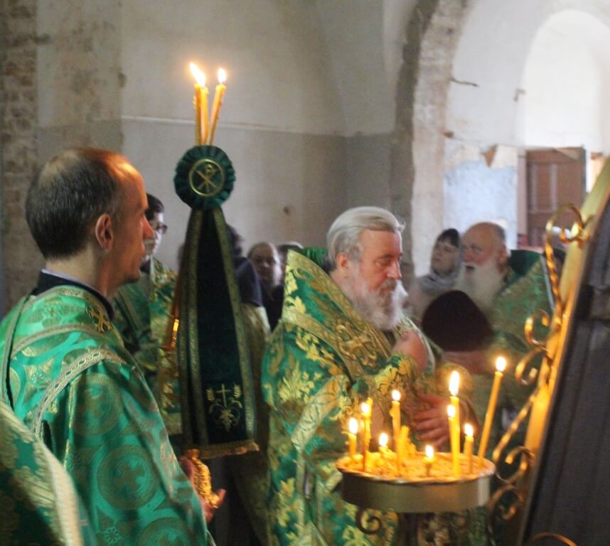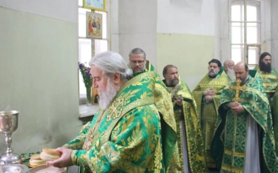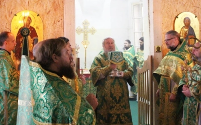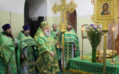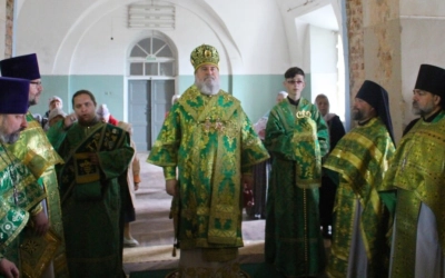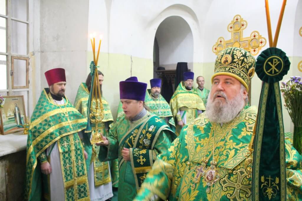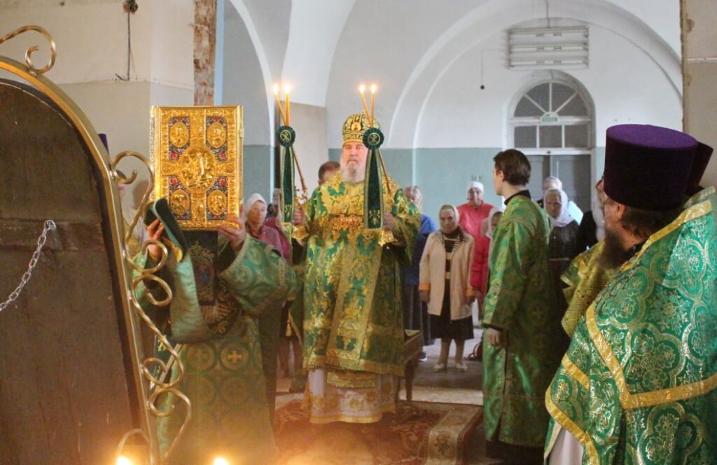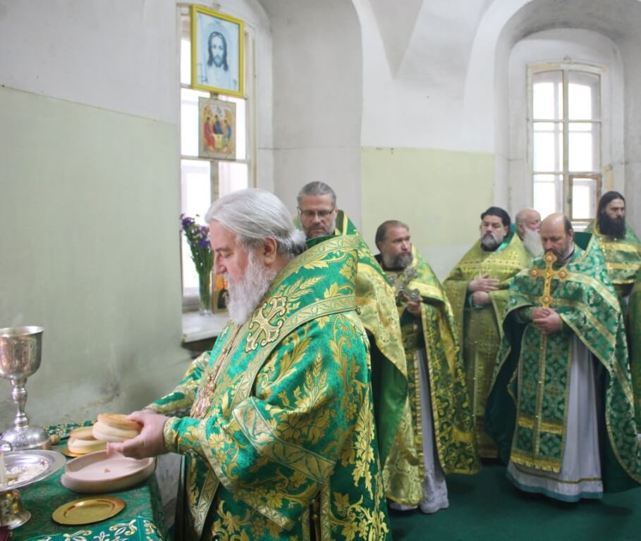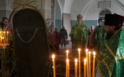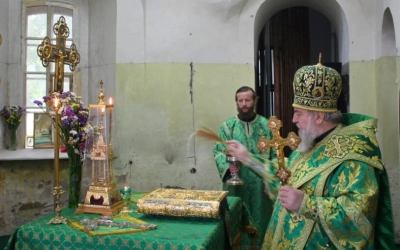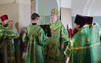 Перед началом богослужения епископ Сергий совершил чин малого освящения центрального придела во имя прп. Аркадия Вяземского.