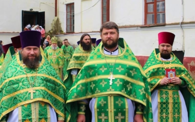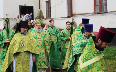 По случаю Престольного праздника духовенство во главе с Епископом Сергием совершили Крестный ход.
