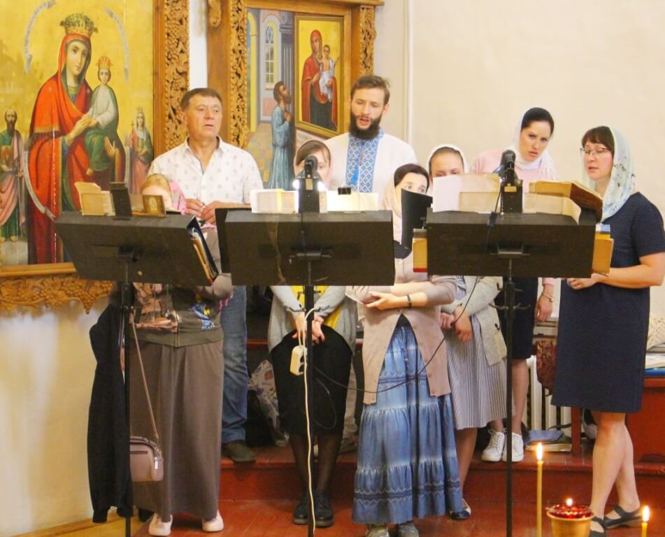 Богослужебные песнопения исполнил хор Свято-Троицкого собора-регент Елена Платонова.
