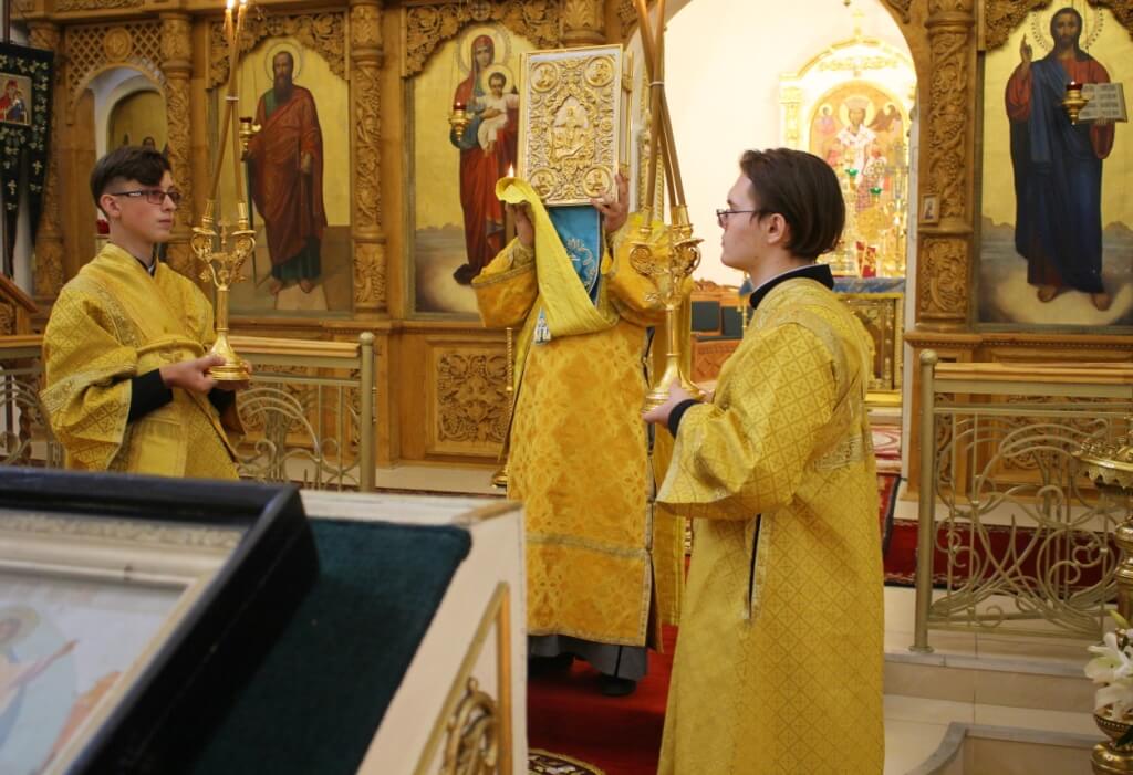 Правящему архиерею сослужили: настоятель Свято-Троицкого кафедрального собора города Вязьма иерей Александр Курмелёв, клирик Свято-Троицкого кафедрального собора иерей Владимир Покатов.