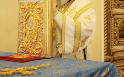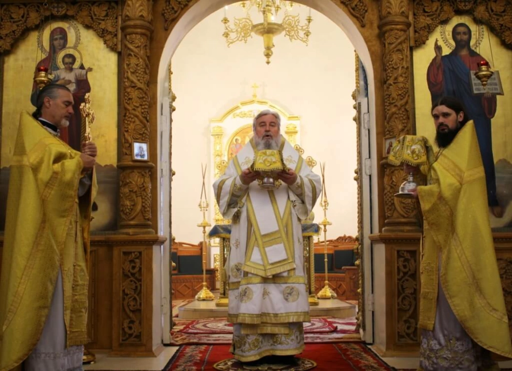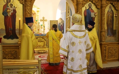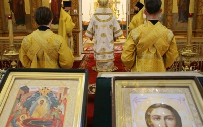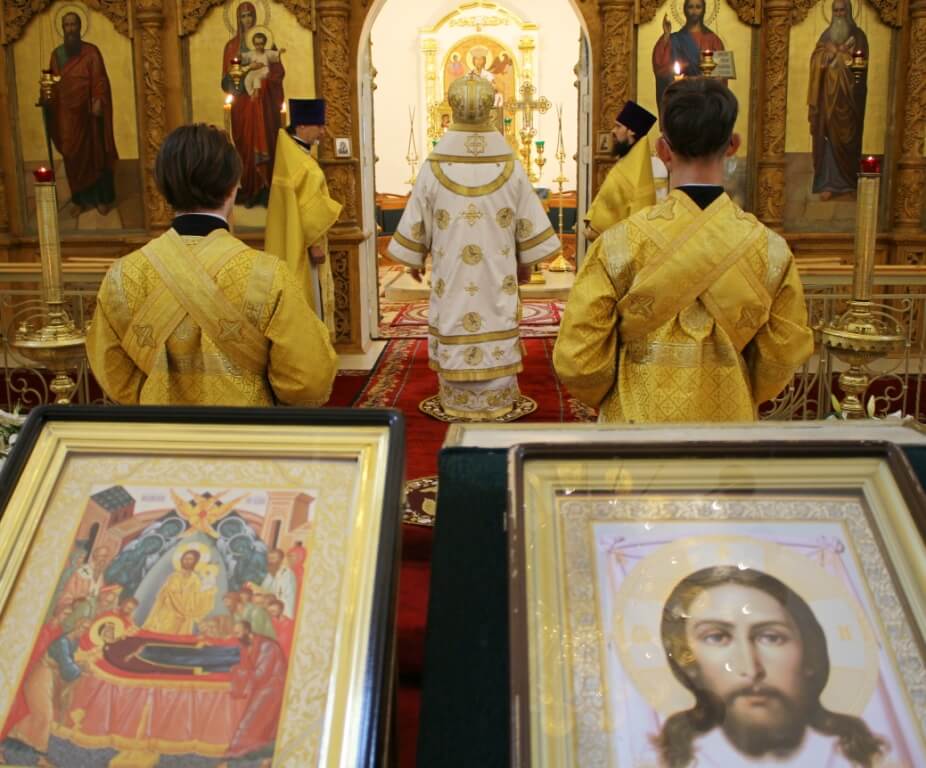 По отпусте Божественной литургии было совершено славление Нерукотворенному Образу Господа нашего Иисуса Христа.