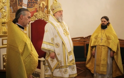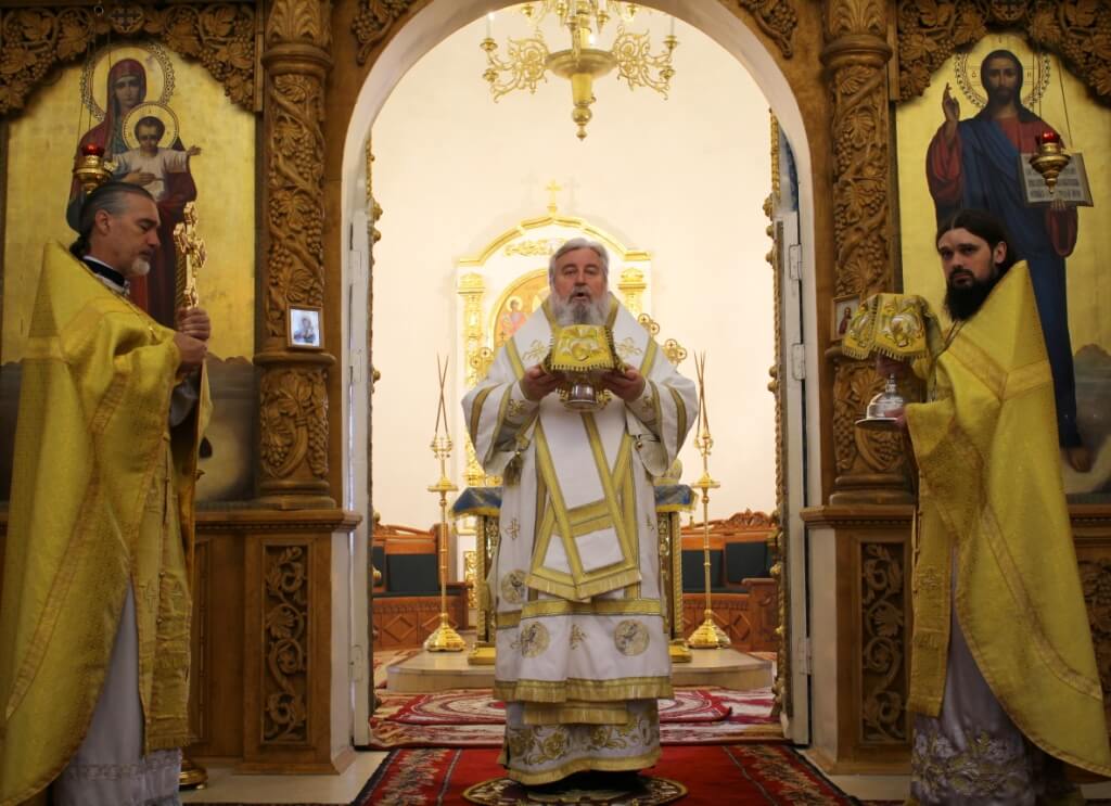 На сугубой ектении прозвучали прошения о единстве Православной Церкви и сохранении Церкви от разделений и расколов, а также прозвучали прошения возносимые во время распространения вредоносного поветрия.