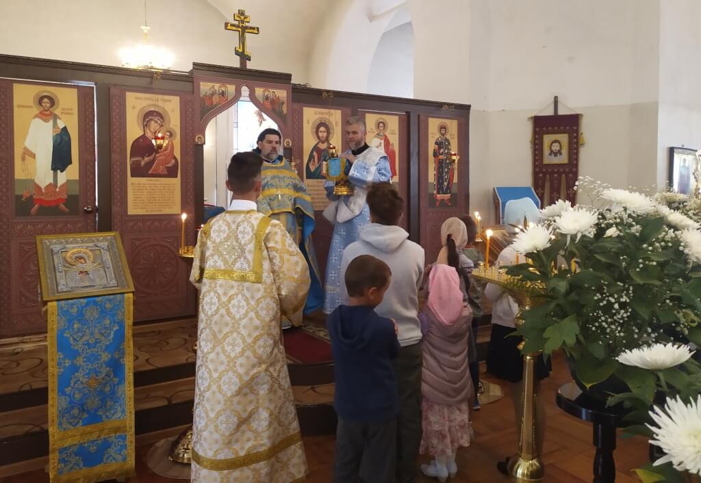 30 августа 2020 года в Тихвинском храме города Гагарин состоялась Божественная Литургия, которую совершил благочинный Гагаринского округа игумен Александр (Карпиков). Его Высокопреподобию сослужил диакон Димитрий Прусов. Традиционно в последнее воскресенье августа был совершен молебен О Учащих и Учащихся. В этот день школьники с бабушками и дедушками, мамами и папами посетители храм для того, чтобы получить Благословение в Новом учебном году. После причащения Святых Христовых Тайн все совместно помолились о благополучной учебе. После этого отец Александр обратился к присутствующим в пастырском словом: