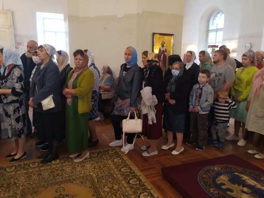 28 августа 2020 года в праздник Успения Пресвятой Богородицы в Тихвинском храме города Гагарин состоялась Божественная Литургия, которую возглавил благочинный Гагаринского округа игумен Александр (Карпиков).