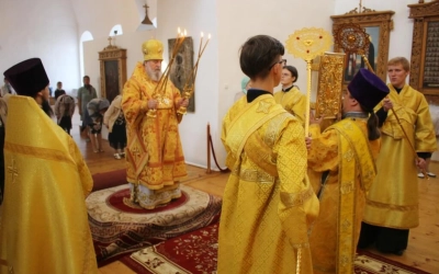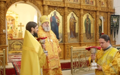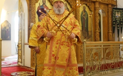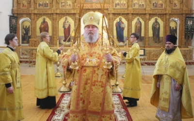 В завершении богослужения Епископ Сергий обратился к присутствующим с Архипастырским словом, поздравив духовенство и всех участников богослужения с воскресным днём.