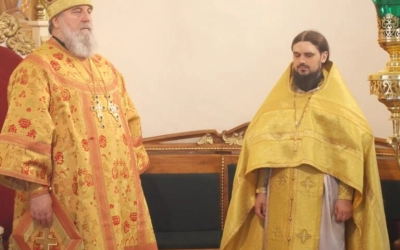настоятель Свято-Троицкого кафедрального собора города Вязьма иерей Александр Курмелёв, клирик Свято-Троицкого кафедрального собора иерей Владимир Покатов.