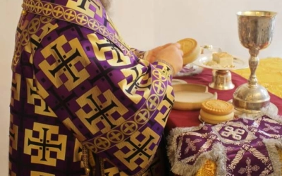 На сугубой ектении были вознесены молитвенные прошения об избавлении от коронавирусной инфекции.