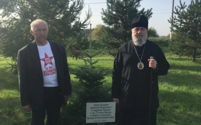 В память 75-летия Победы в Великой Отечественной войне, и памяти о погибших воинах, Епископ Сергий посадил в парке пихту.