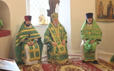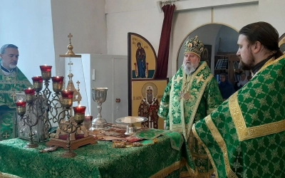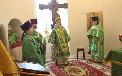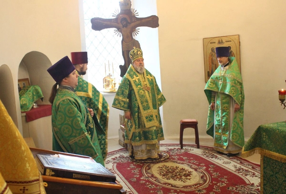 Во время богослужения Преосвященнейший Сергий произнем молитву об избавлении от губительного поветрия.