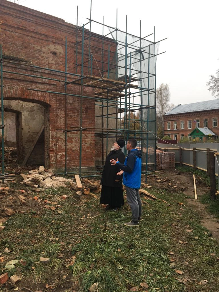 15 октября епископ Вяземский и Гагаринский Сергий посетил с рабочим визитом днревню Кикино Темкинского района, где ознакомился с ходом ремонтно-реставрационных работ храма в честь Архистратига Божия Михаила.