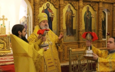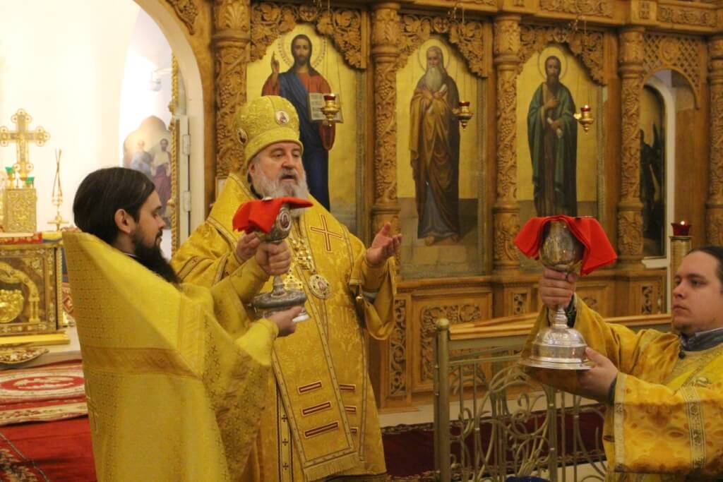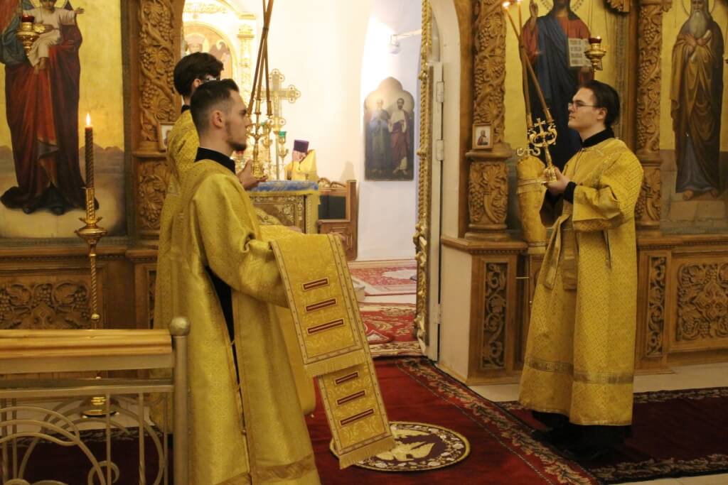 На сугубой ектении прозвучали прошения о единстве Православной Церкви и сохранении Церкви от разделений и расколов, а также прозвучали прошения возносимые во время распространения вредоносного поветрия.