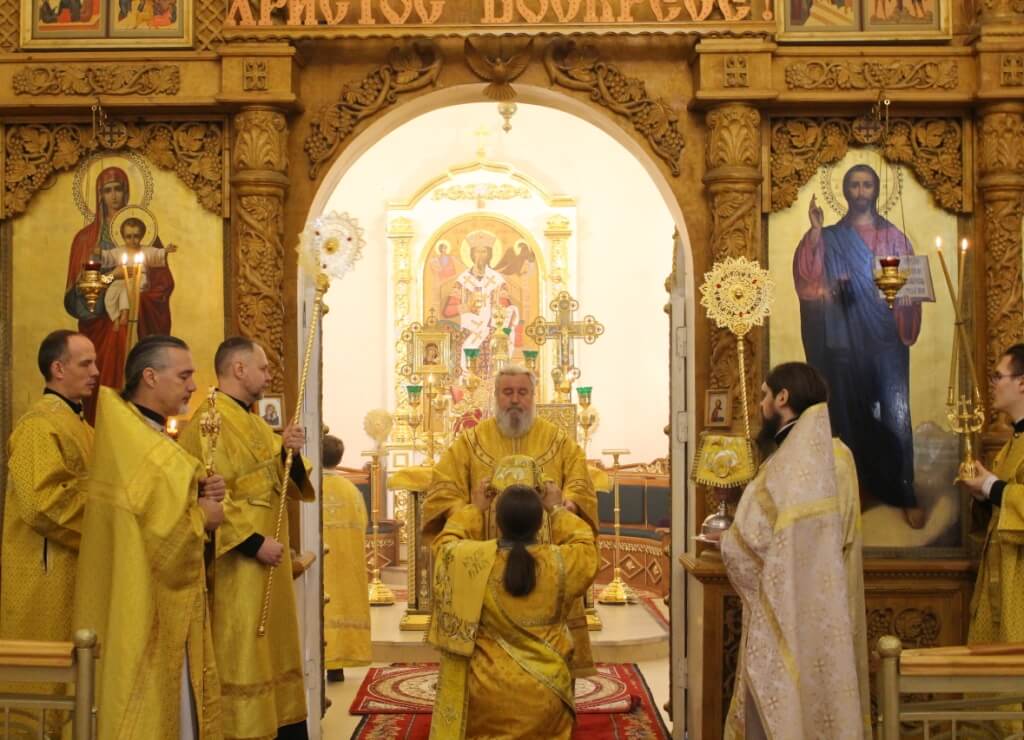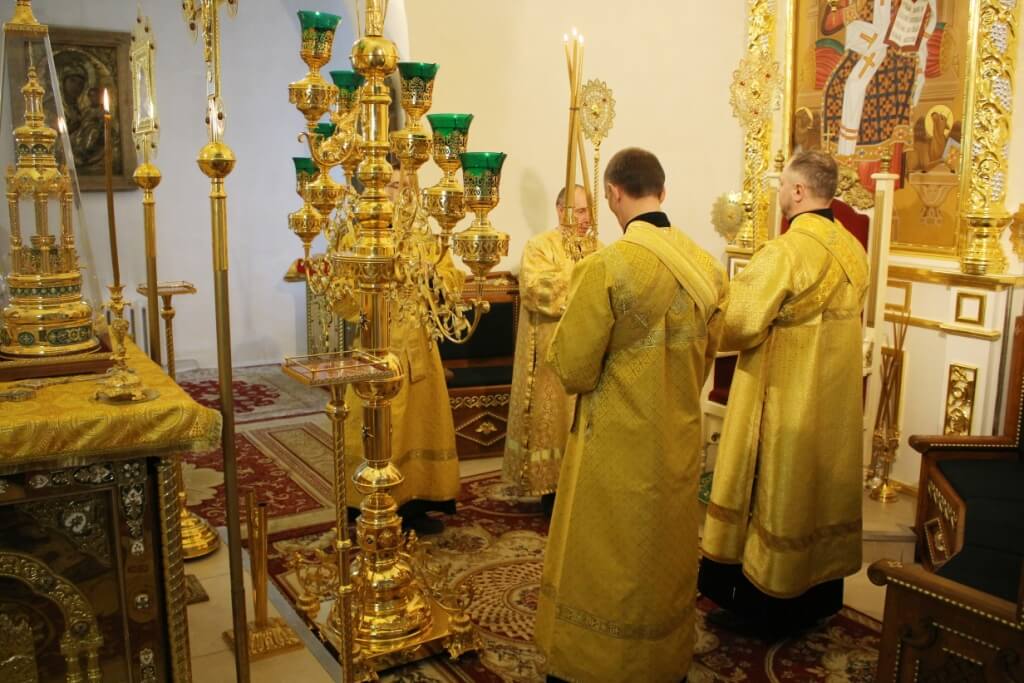 На сугубой ектении прозвучали прошения о единстве Православной Церкви и сохранении Церкви от разделений и расколов, а также прозвучали прошения возносимые во время распространения вредоносного поветрия.