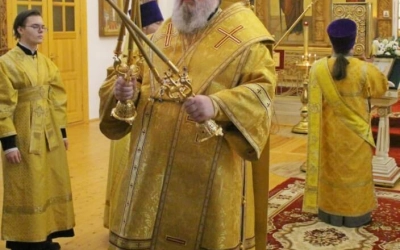 В завершении богослужения Епископ Сергий обратился к присутствующим с Архипастырским словом, поздравив духовенство и всех участников богослужения с воскресным днём.